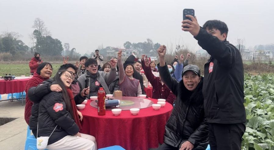 “粉丝里甚至有专门从广东赶过来的。”“大森子”笑着说,那位粉丝的理由是“想来四川找个女朋友,顺便考察一下这边的市场”,其实就是为了来玩一趟、吃顿饭。还有很多城里来的年轻人感慨,这种在路边田间地头吃席的感觉,“很多年都没有过了”。