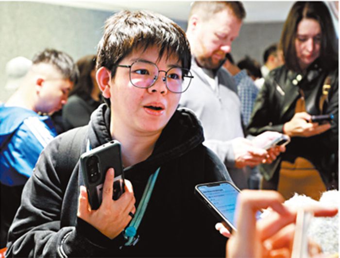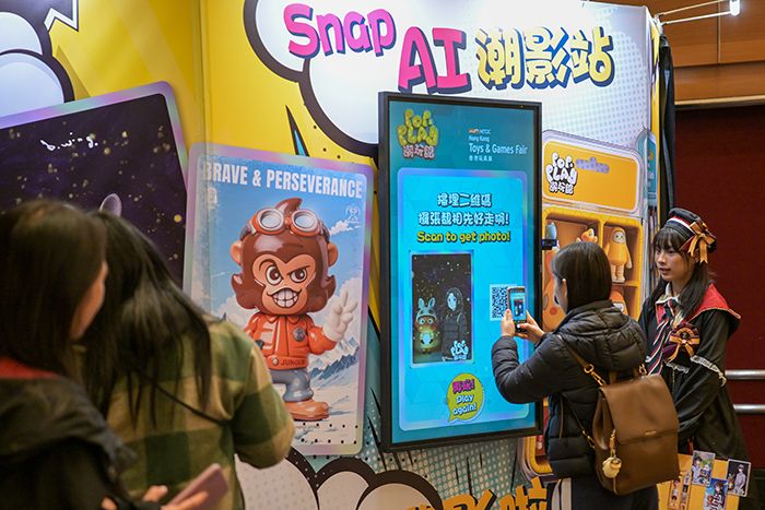 1月12日,第52届香港玩具展在香港会议展览中心揭幕。图为现场人士拍摄由人工智能生成动漫风格的图片。(图/中新社)