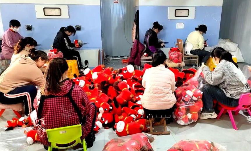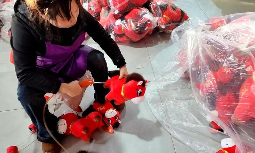 1月12日,在位于山东的生产车间,工人忙着生产“哭哭马”小马公仔玩具。(新华网)