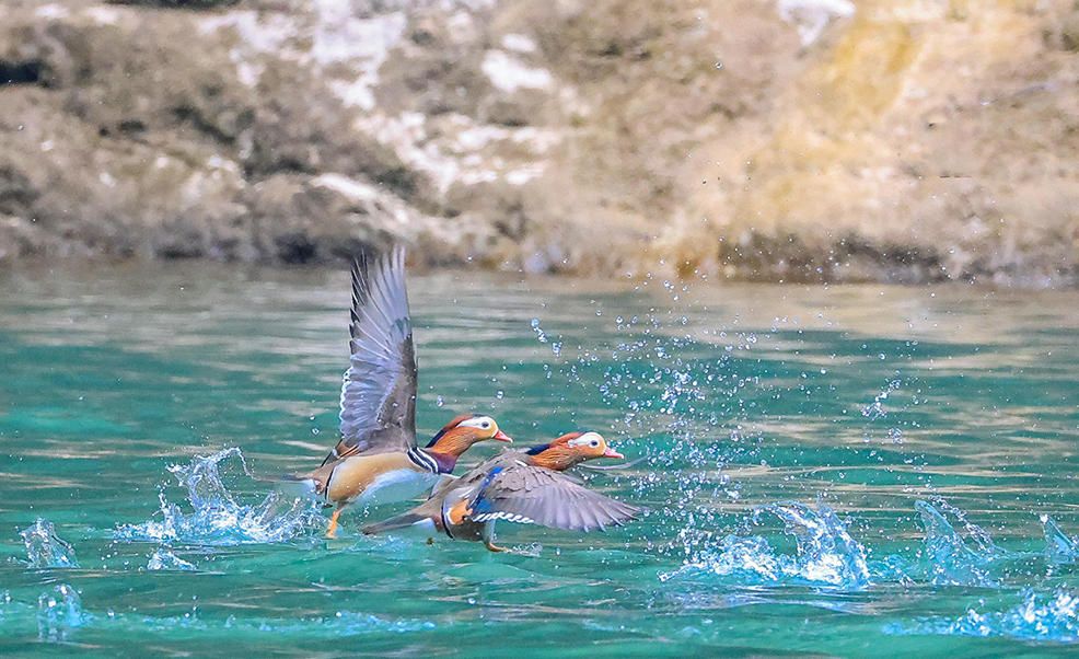 1月10日,重庆巫山小三峡,成群鸳鸯在此越冬栖息。(人民网)