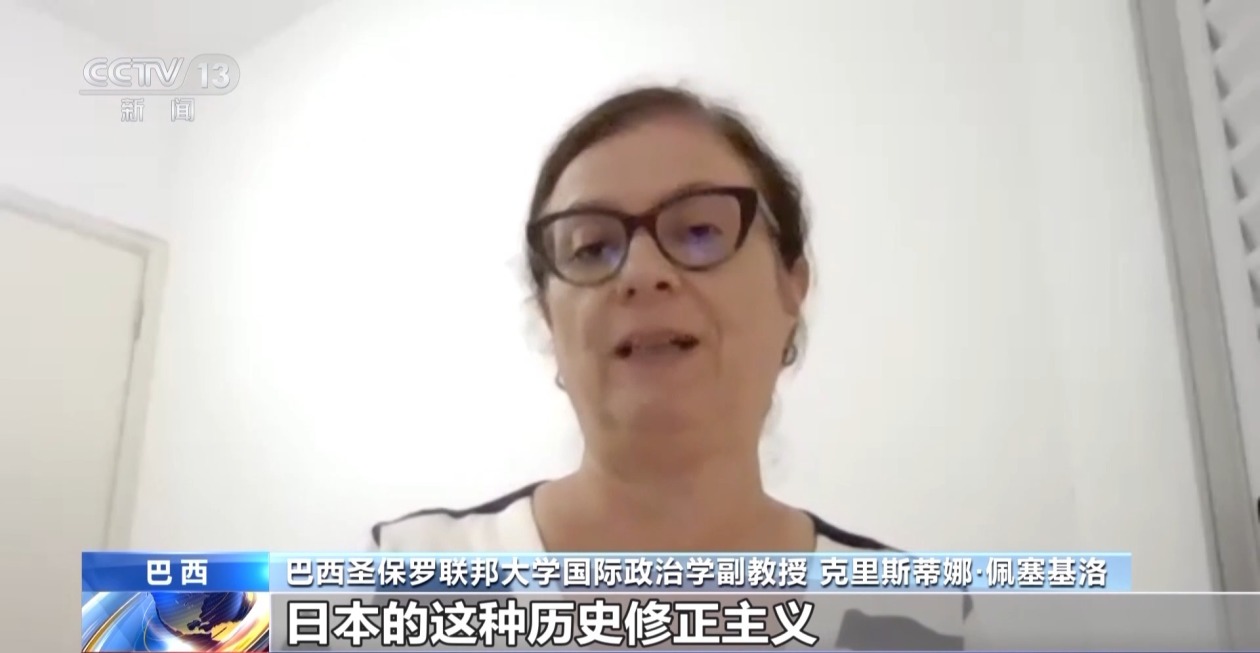 巴西圣保罗联邦大学国际政治学副教授 克里斯蒂娜·佩塞基洛:日本的这种历史修正主义实际上是更大范围内历史修正主义的一部分,它与极右翼保守势力相互呼应,并将世界推向更加不稳定的局势中。日方错误言论实际上是一种以短期政治目标为导向的视角,它正在破坏那些在政治分歧中逐步建立起来的合作关系。