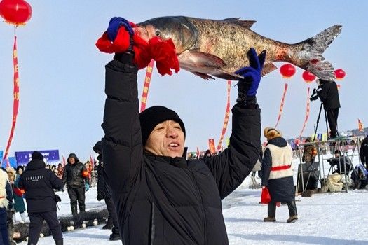 1月15日,中国·镜泊湖第十一届冬捕节暨冰超·牡丹江首届镜泊湖冬钓挑战赛启幕。