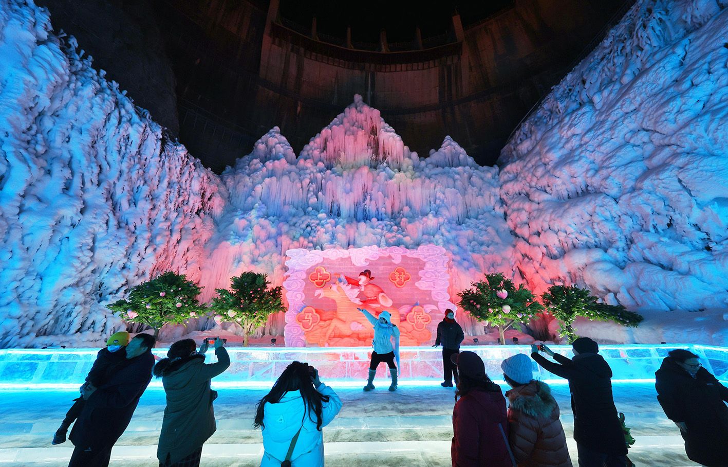 市民“打卡”龙庆峡冰灯艺术节。(人民网)