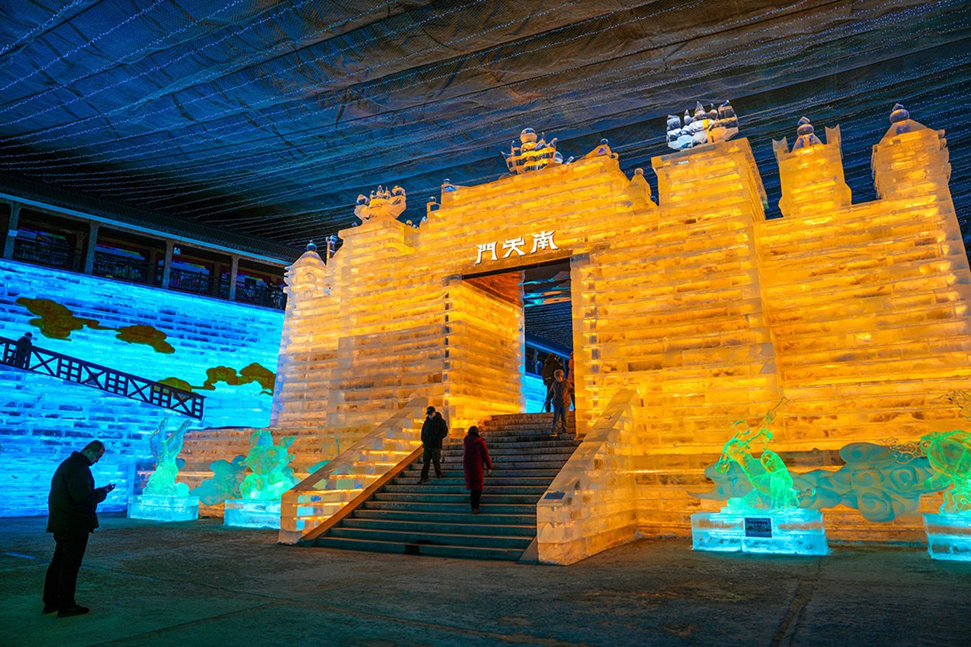 “灵猴现世”展区内,石猴神态鲜活灵动;“龙宫借宝”展区里,虾兵蟹将造型惟妙惟肖;“大闹天宫”展区中,高达13.6米的“南天门”冰建筑巍然屹立,成为展区制高点,气势恢宏震撼。(《北京青年报》)