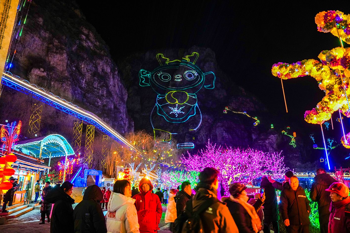 当地时间1月15日晚,北京延庆,第40届龙庆峡冰灯艺术节正式开幕。本届艺术节以“龙庆传奇·致敬经典”为主题,深情回望四十年冰雪文旅发展历程,更以中国国产动画经典《大闹天宫》IP为灵感打造奇幻冰境,为游客献上一场沉浸式冬日文旅盛宴。