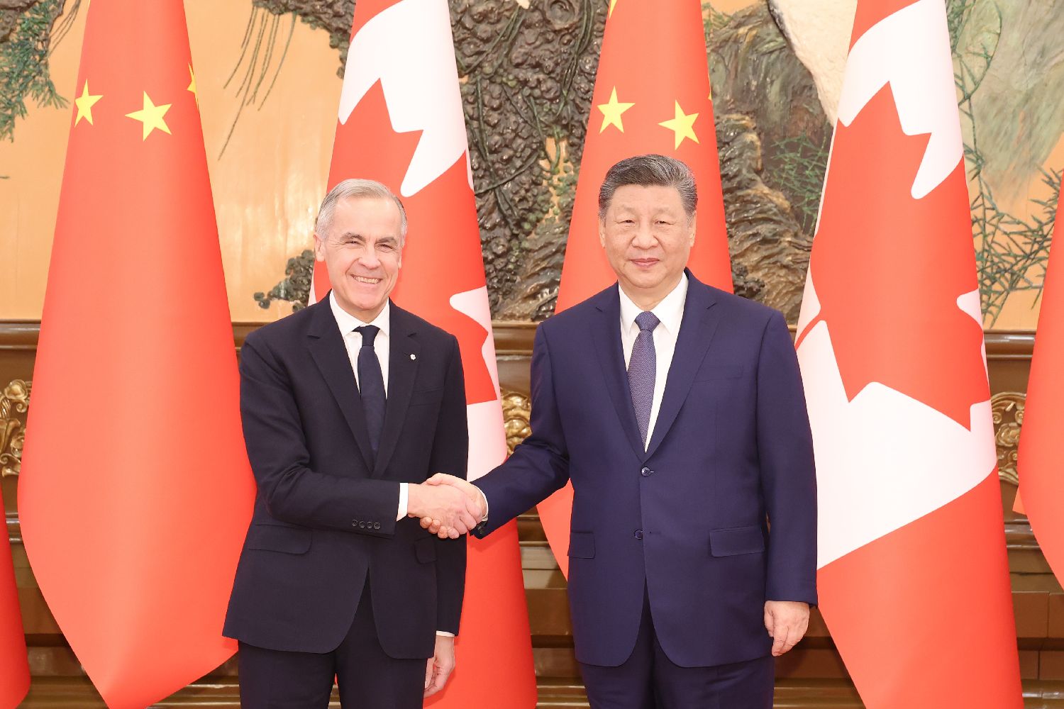1月16日,中国国家主席习近平在北京会见赴华进行正式访问的加拿大总理卡尼。(图/中新社)