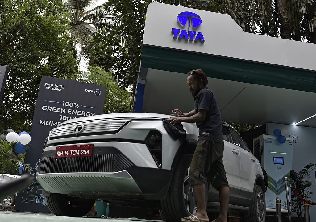 印度塔塔集团位于孟买的电动汽车充电中心。(视觉中国)