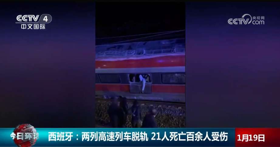 西班牙南部科尔多瓦省18日发生两列高速列车脱轨事故。(图/中国央视新闻视频截图)