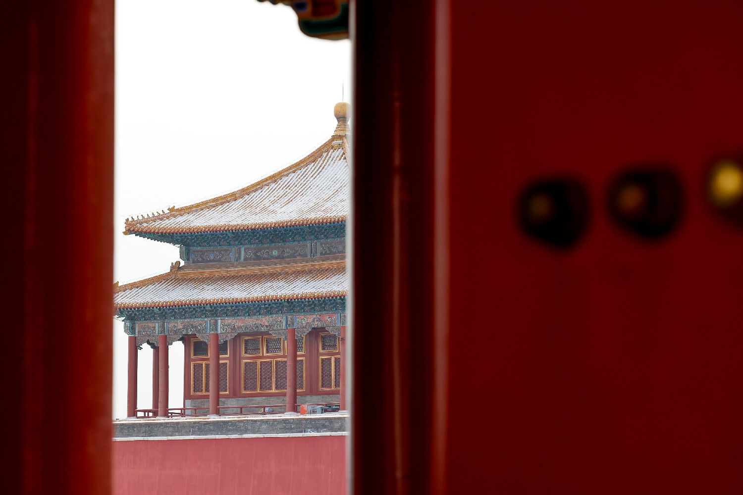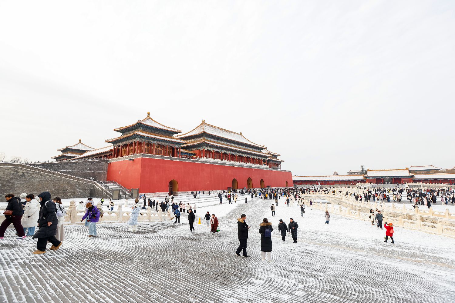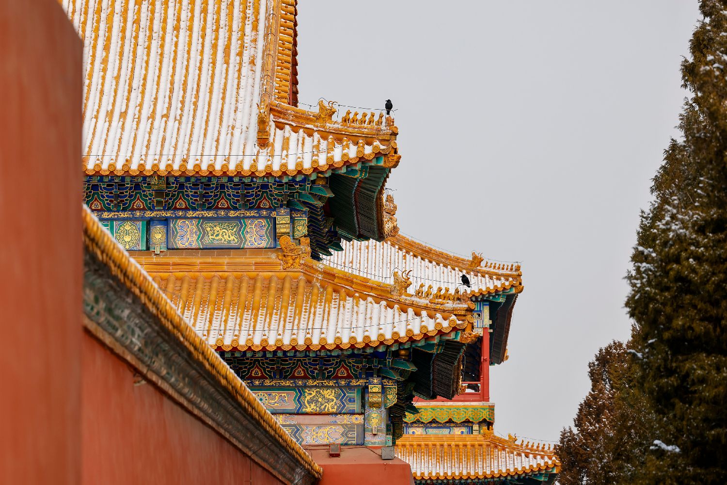 红墙金瓦与白雪交织的中式浪漫