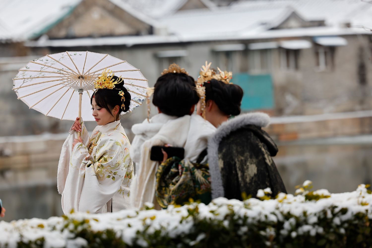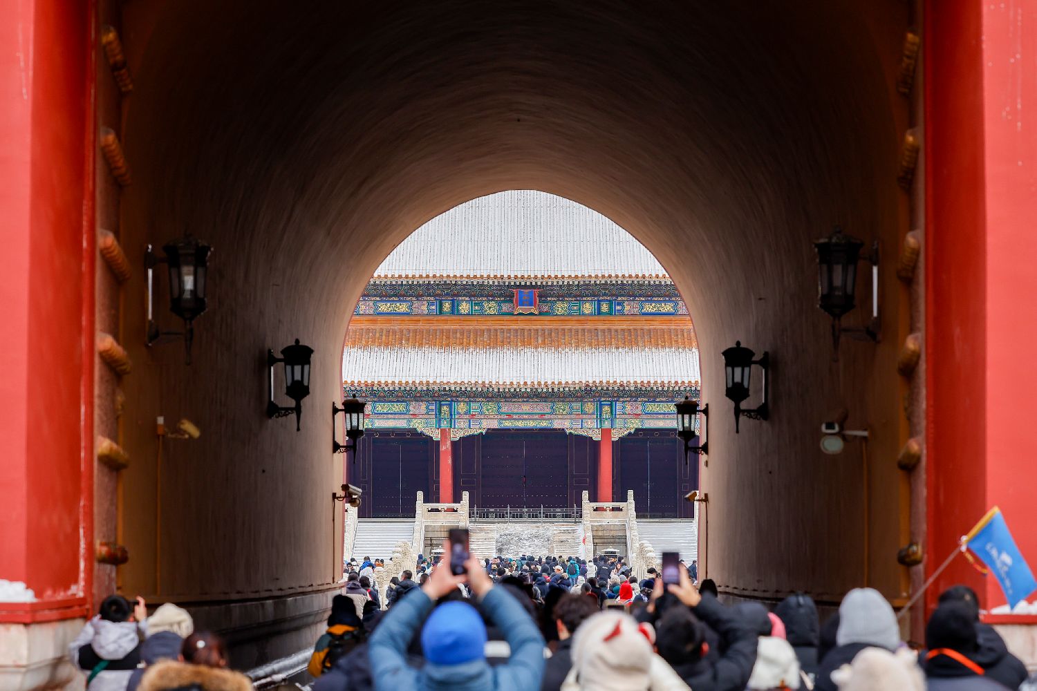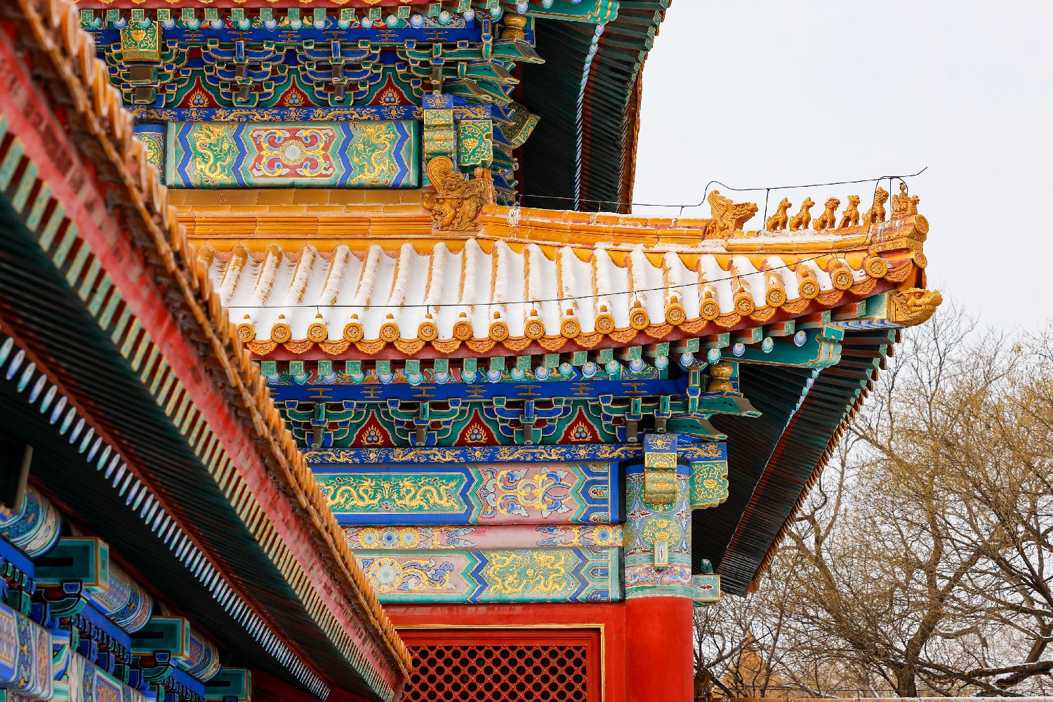 红墙金瓦与白雪交织的中式浪漫