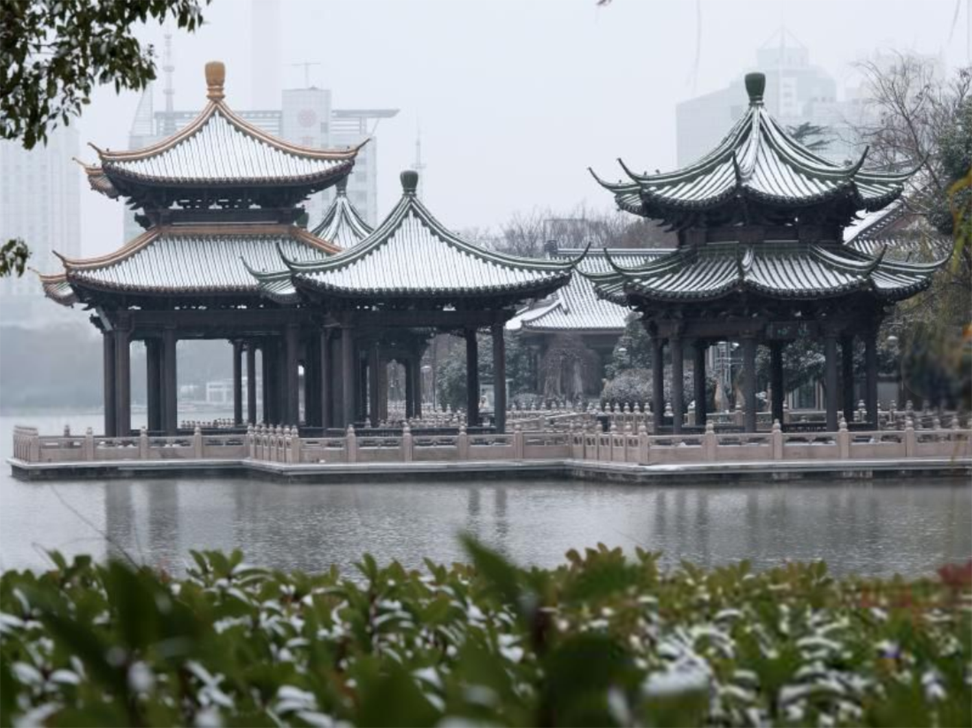 近日,受冷空气影响,中国多地迎来降温降雪天气,美丽风景披上洁白的盛装,构成一幅天然的水墨画。