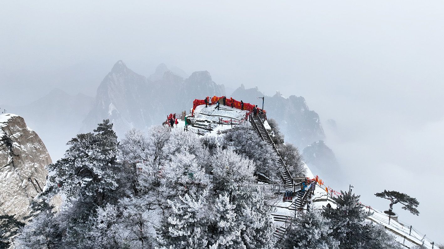 1月19日,陕西渭南,航拍陕西华山冬日雪景。图为华山南峰。(中新社)