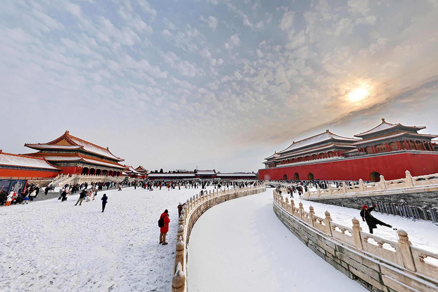 1月18日,大雪初晴后的故宫,宛如一幅银装素裹的历史长卷。琉璃瓦上覆着蓬松积雪,檐角脊兽头顶白雪,红墙在雪映之下更显庄重沉静。(人民网)
