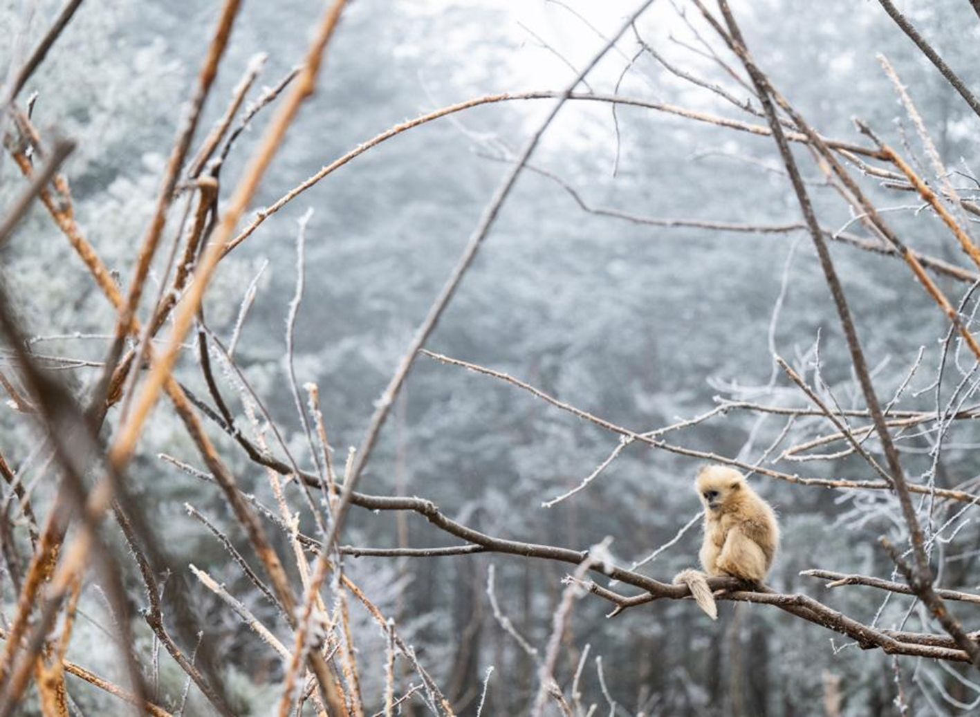 1月19日,金丝猴在神农架国家公园大龙潭金丝猴野外研究基地山林中活动。近日,湖北省神农架林区迎来降雪,金丝猴群在雪地里玩耍、觅食、休憩。(新华社)