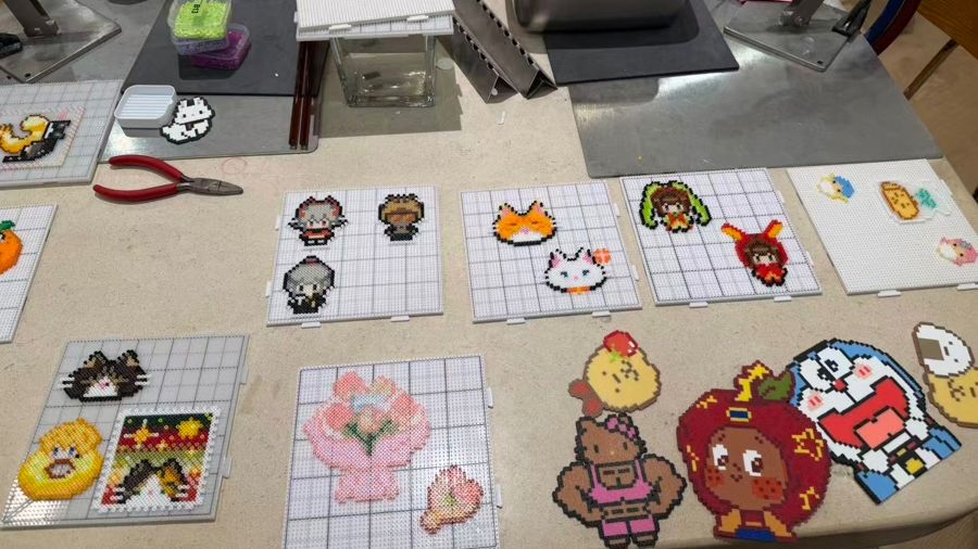 手作店里玩家刚完成的拼豆作品。(图/上海上观新闻)