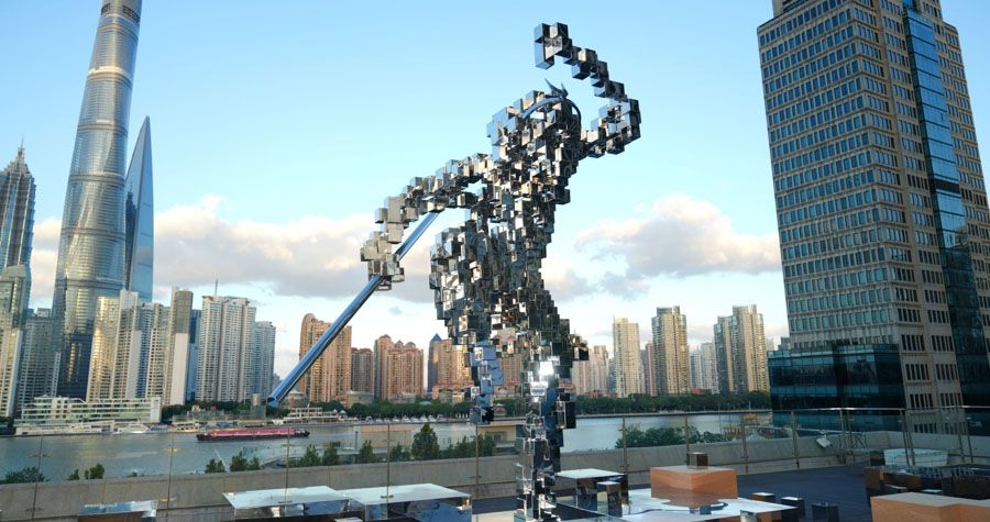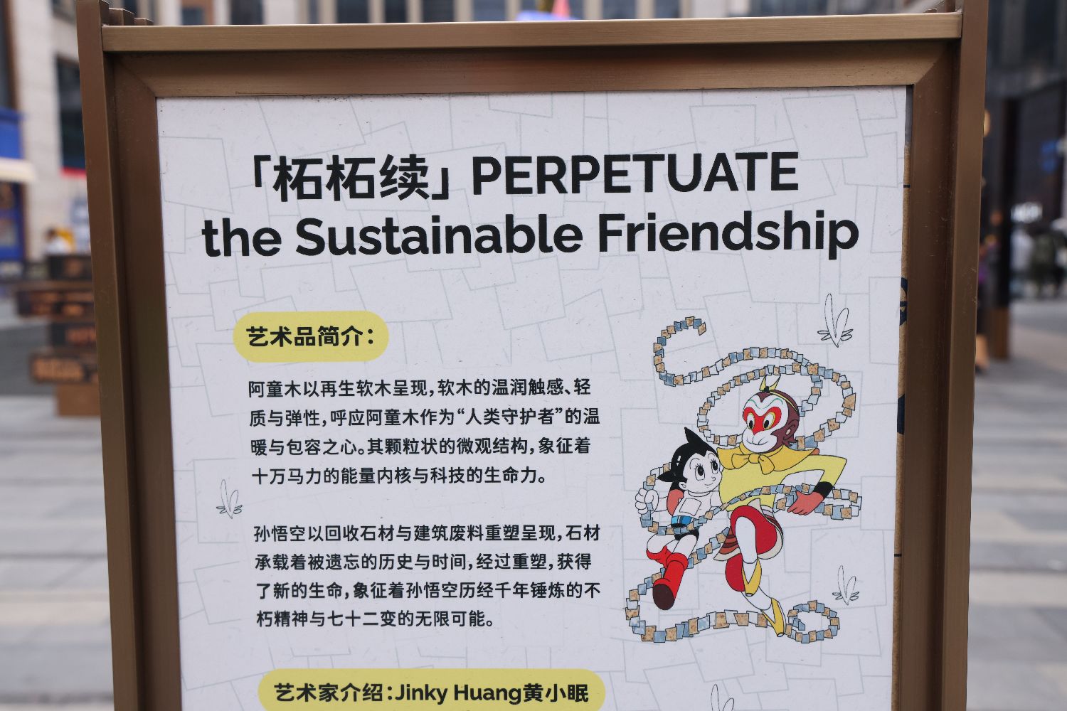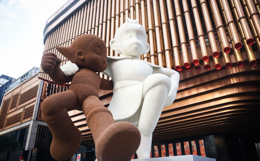 上海黄浦区BFC外滩金融中心广场上,由回收再生材料制作的孙悟空和阿童木二次元塑像十分引人注目。(上海上观新闻网)