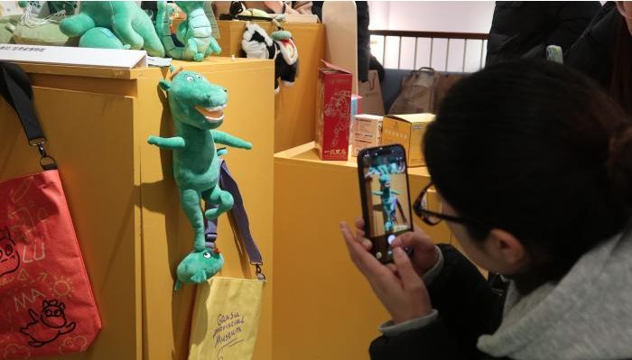 1月21日,游客拍摄“马踏飞燕”文创产品。(图/中新网)
