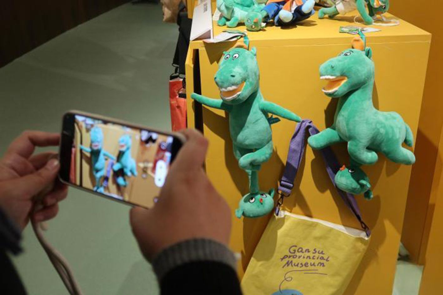 1月21日,游客拍摄“马踏飞燕”文创产品。(中新网)