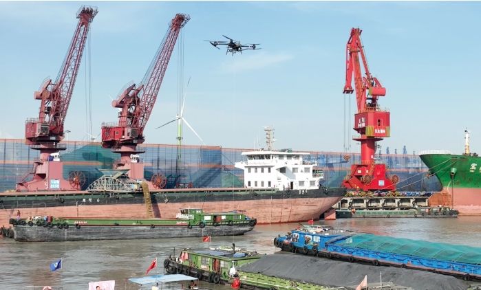 日前,江苏省首单支流待闸船舶无人机免费配送服务在江阴落地。江阴海事局危管防污处处长陆予衡介绍,多部门推动建立长江江阴段南岸岸基站点,设立专用物资仓库,与干流北侧服务区站点协同互补,服务保障长江干线船舶、5个港池及闸口内外水域船舶,在长江江苏段率先形成覆盖干支流全域的空中物流网络。