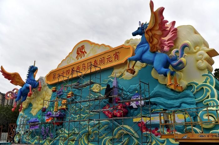 1月23日,在中国船政文化园内,第二十四届“两马同春闹元宵”灯会正在紧锣密鼓地布置中。(图/中新社)