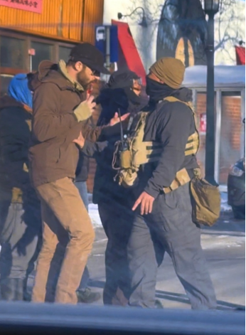 图为当地时间1月24日美国公民亚历克斯·普雷蒂(左)在美国明尼苏达州明尼阿波利斯被联邦执法人员枪杀前的画面。图源:美媒