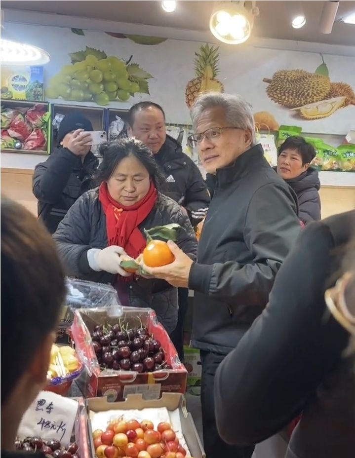 1月24日,AI芯片龙头英伟达创始人兼CEO、美籍华人企业家黄仁勋现身上海一菜场,品尝小吃并给商户发红包,线上线下引发围观。