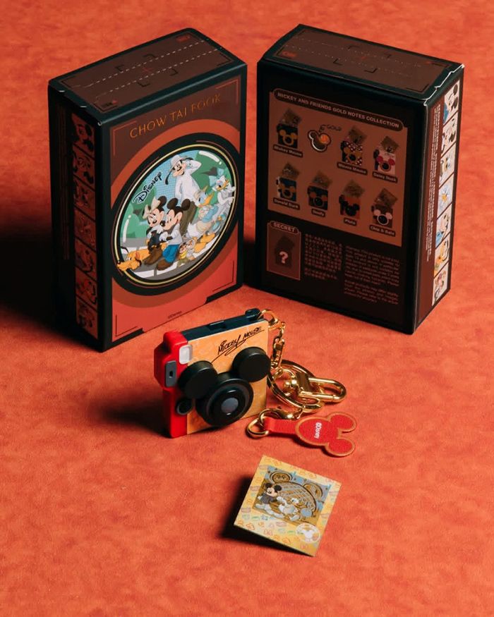 周大福迪士尼经典系列“Mickey and Friends”金卡盲盒共有8款设计,设计灵感来自立拍得,以米奇及米妮、唐老鸭、黛丝、高飞等为主角,游走香港名胜拍照打卡为主题;系列以999.9黄金精制,特别版采用幻彩工艺精细印制,配上金色相纸框。