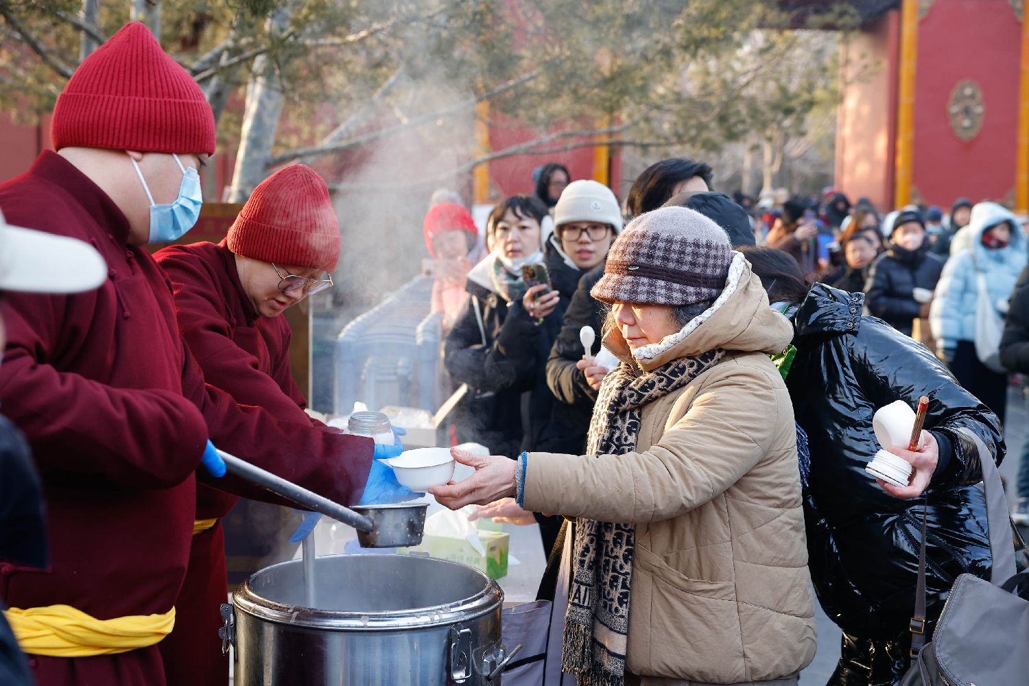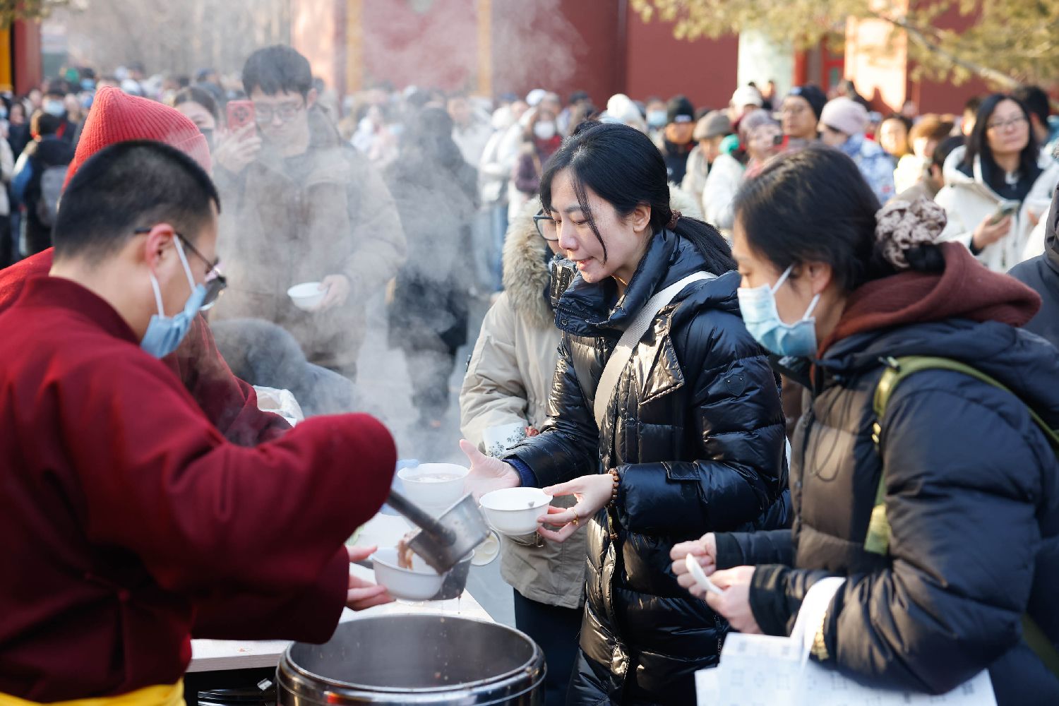 2026年1月26日,正值中国传统节日——腊八节,有喝腊八粥的习俗。北京雍和宫在这一天施粥,为游客送上冬日里最温暖的祝福。