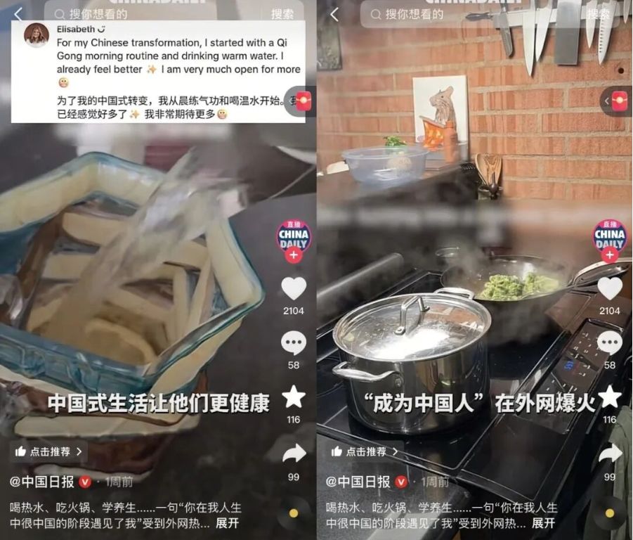 以往,长城、功夫、熊猫等标签化元素构成了外界对中国的认知框架,而此次走红的,是喝热水、熬粥煲汤这些中国人习以为常的生活细节。博主一句“从明天开始,你要变成中国人了”的幽默宣言,就能收获百万播放,这是因为它触及了文化交流的本质——不是居高临下的文化输出,而是低门槛、可参与的生活实践。这种“接地气”的文化互动,让中国不再是遥远的地理概念,而是可感可知的生活方式。