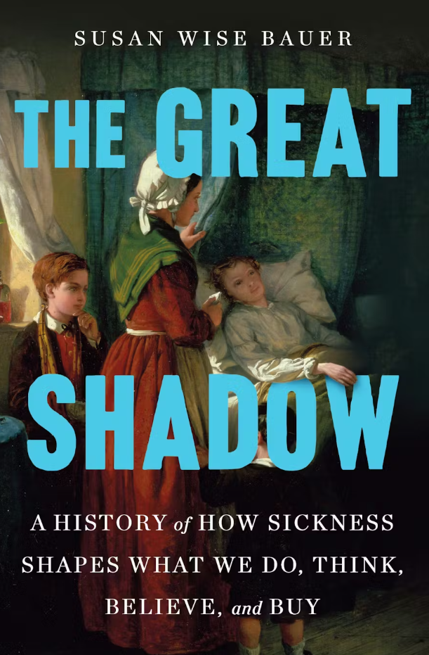 多恩这种将疾病化作哲思的行为,为《巨大的阴影:历史上的疾病如何重塑人类文明》(2026年出版)(如图)的作者、美国作家苏珊·怀斯·鲍尔带来了创作灵感。苏珊以文字铺展了数千年间人类与瘟疫(主要是传染病)的抗争史。鼠疫、斑疹伤寒、天花占据其中多数篇幅,并与流感、肺结核、痢疾、猩红热、霍乱、麻疹等一同构成了苏珊笔下触目惊心的“病魔群像”。