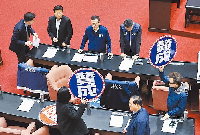 台立法机构蓝白立委27日第十度封杀1.25万亿元新台币“防务特别预算”。(图/台北中时新闻网)