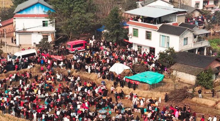 据悉,今年年初,合川女孩“呆呆”在社交平台上发出一句邀约,希望网民到她家帮年迈的父母按年猪,她请吃“刨猪宴”,不料千万网民蜂拥而至。5个“刨猪汤群”爆满,渝A、川A、粤A、鲁A,天南地北的车辆在窄窄的乡间小道上绵延数公里。当地文旅、公安等各部门迅速出动维护秩序,网民自发送来物资,帮忙下厨传菜。这场始于网络邀约的刨猪宴,发酵成了现象级文旅事件,烟火气在沸腾的刨猪汤里升腾,慰藉了无数网民的乡愁。