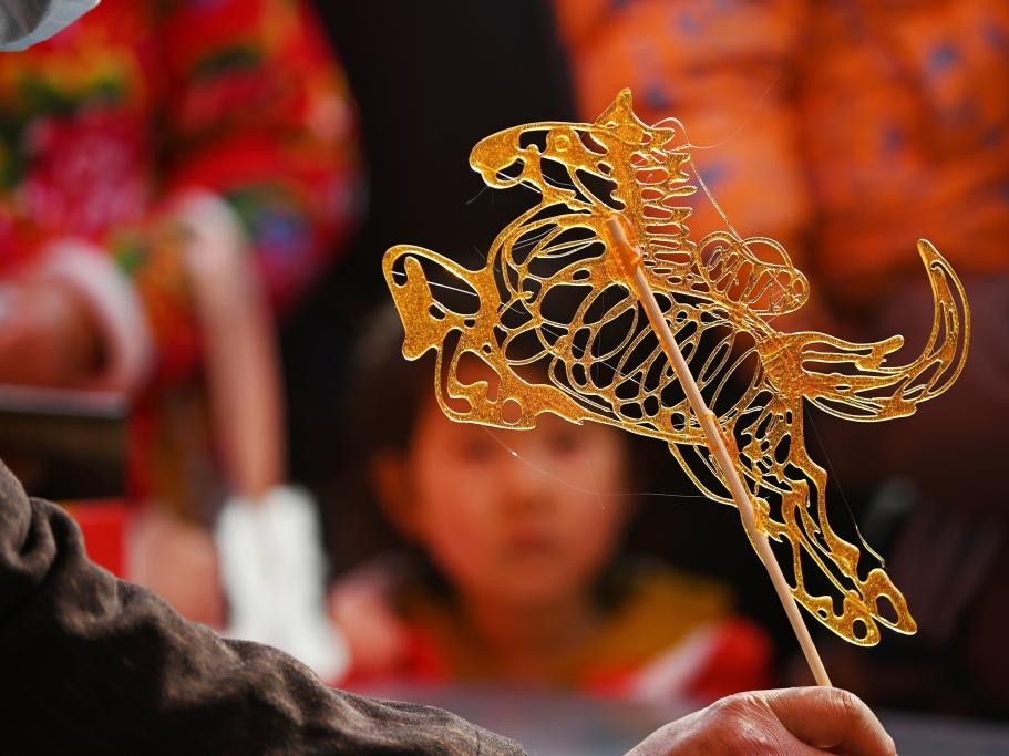 图为1月25日,山东滕州,民间艺人在制作糖画“奔马迎春”。(新华社)