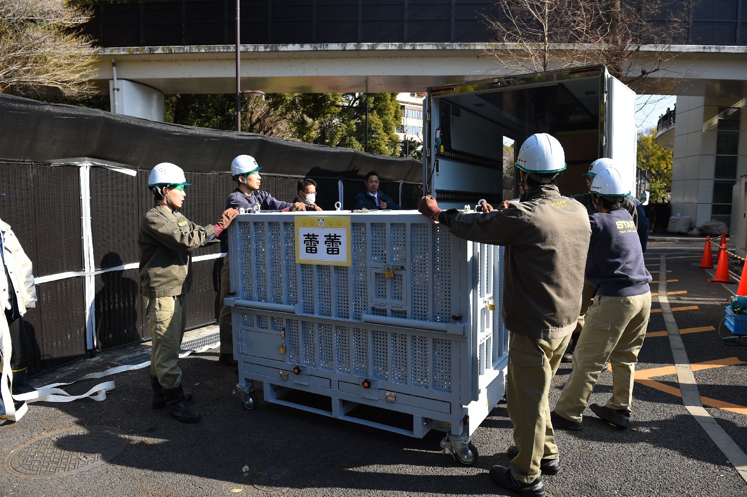 1月27日,旅日大熊猫“晓晓”和“蕾蕾”由卡车运载从东京上野动物园出发,踏上回国之旅。图为装有大熊猫“蕾蕾”的物流箱被运上卡车。(图/中新社)