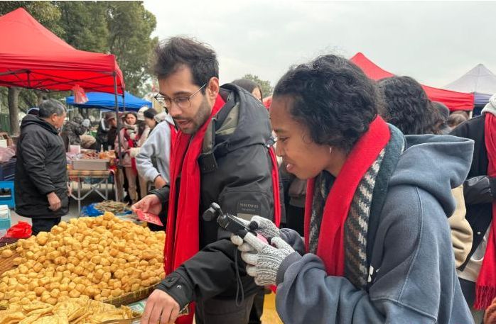 “洋学生”走访浙江宁波老街集市 体验传统年味
