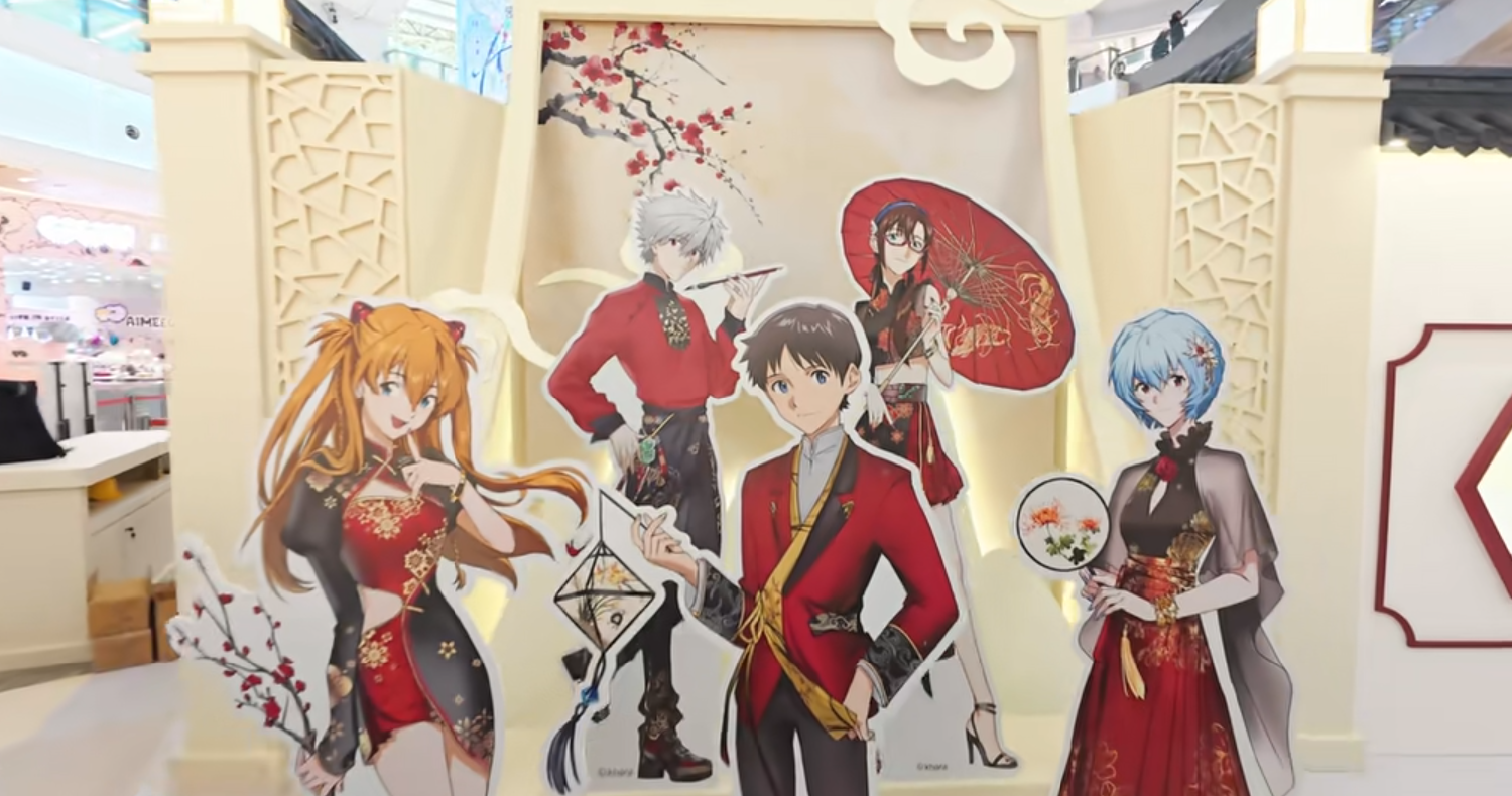 近日,二次元潮玩品牌JOYOUTH与现象级IP《新世纪福音战士》(EVA)携手,在上海静安大悦城打造了为期一个月的“落花盈裳”新中式主题快闪活动。活动不仅将五位主角巧妙融入中国风元素之中,更以“花”为灵感脉络,构建了一个沉浸式的东方美学空间。