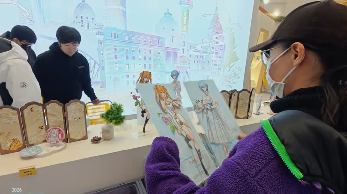 当二次元经典角色换上中式华服,一场打破次元壁的春节穿搭教学已悄然开幕。近日,二次元潮玩品牌JOYOUTH与现象级IP《新世纪福音战士》(EVA)携手,在上海静安大悦城打造了为期一个月的“落花盈裳”新中式主题快闪活动。活动不仅将五位主角巧妙融入中国风元素之中,更以“花”为灵感脉络,构建了一个沉浸式的东方美学空间。这场深度融合IP灵魂与中式潮流的盛宴,自1月17日启幕便迅速引爆社交网络,其推出的限定周边被粉丝热烈追捧,生动演绎了经典IP通过本土化创新所爆发出的非凡市场活力与文化感召力。图为快闪活动吸引粉丝参与打卡。(CFP)