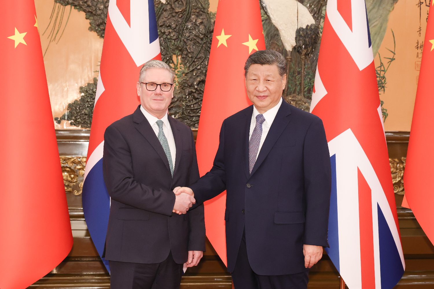 当地时间1月29日上午,中国国家主席习近平在北京人民大会堂会见赴华进行正式访问的英国首相斯塔默。(图/中新社)
