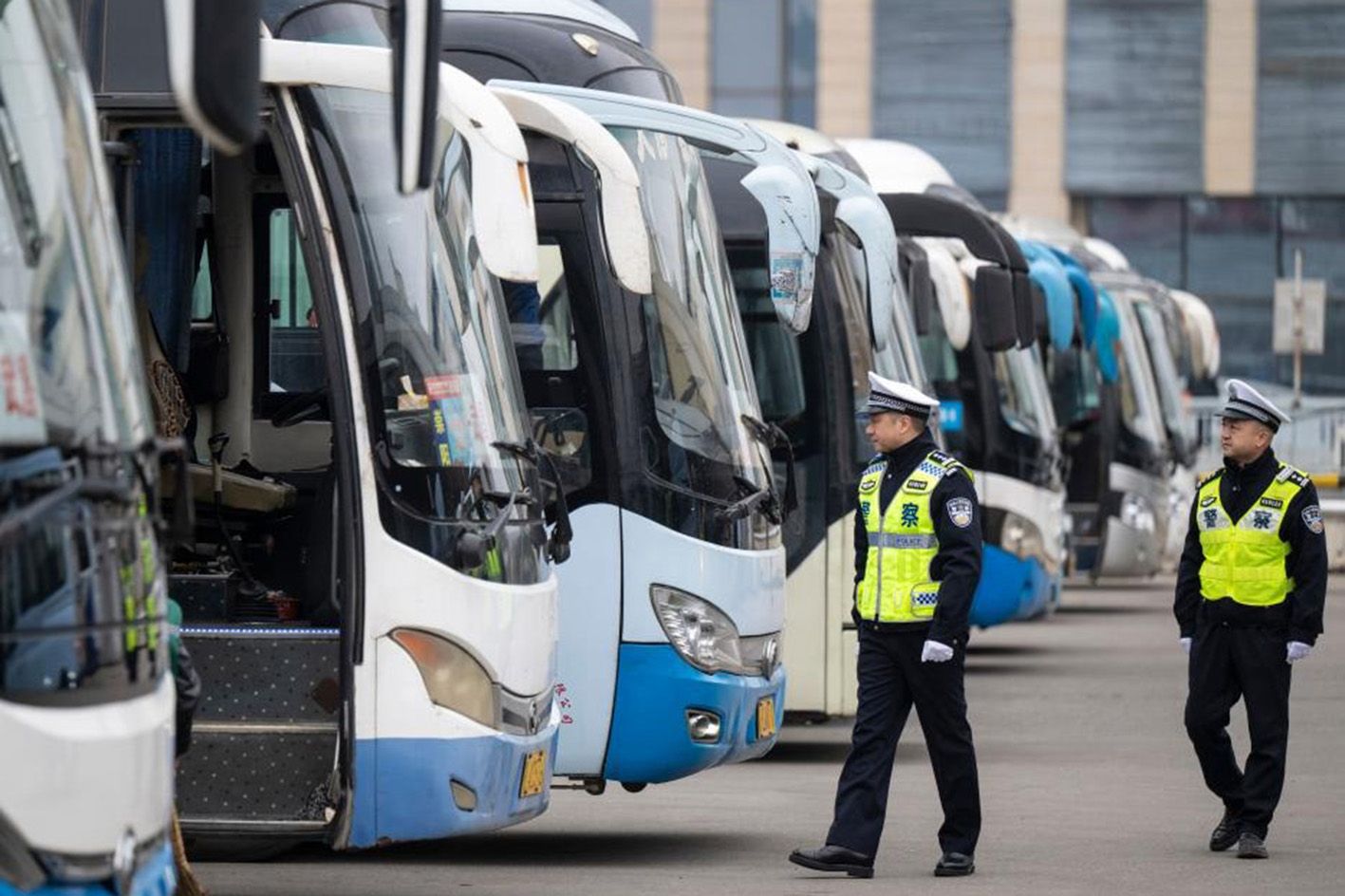 1月29日,在湖北省武汉市宏基长途客运汽车站,武汉交警对长途汽车进行安全检查。春运将至,湖北省武汉市公安局武昌区分局交通管理大队与宏基长途客运汽车站工作人员共同开展春运安全专项检查工作,对长途客运车辆进行全面“体检”,从严排查车辆安全隐患,守护旅客的平安返乡路。(新华社)