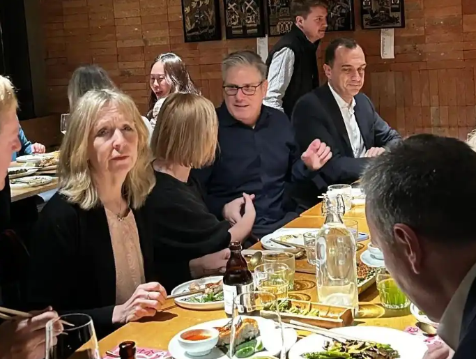 1月28日,英国首相斯塔默一行在北京的一家云南菜馆用餐。(视频截图)