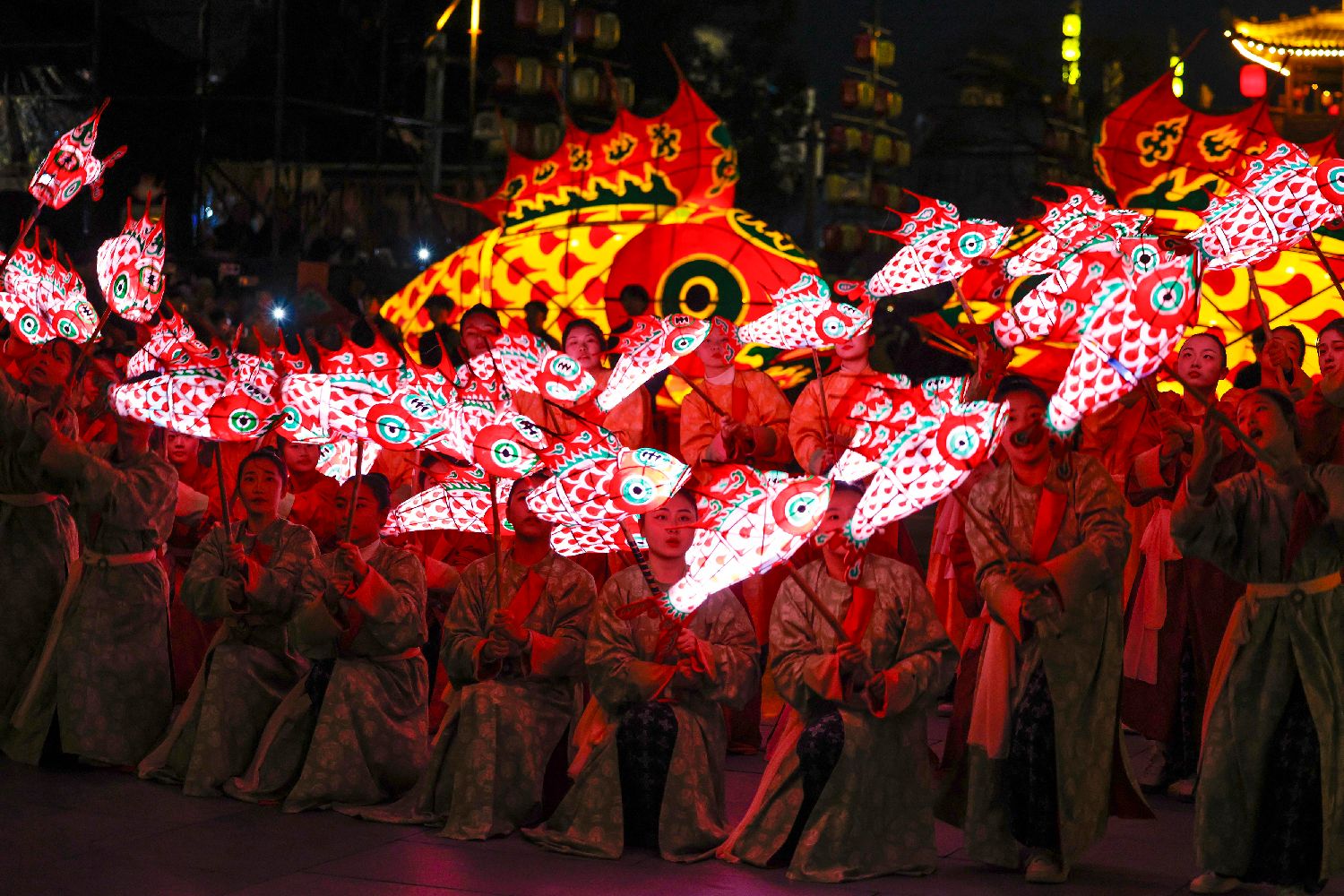 如今,徽州鱼灯成功“出圈”,“去歙县看鱼灯”成为热门打卡项目。歙县整合民间表演队伍,成立近千人的专业演艺团队,将徽州鱼灯表演融入体育、舞蹈元素,编创《鱼灯幻月》《流光戏鳞》等鱼灯主题情景剧,在中国各地常态化演出。