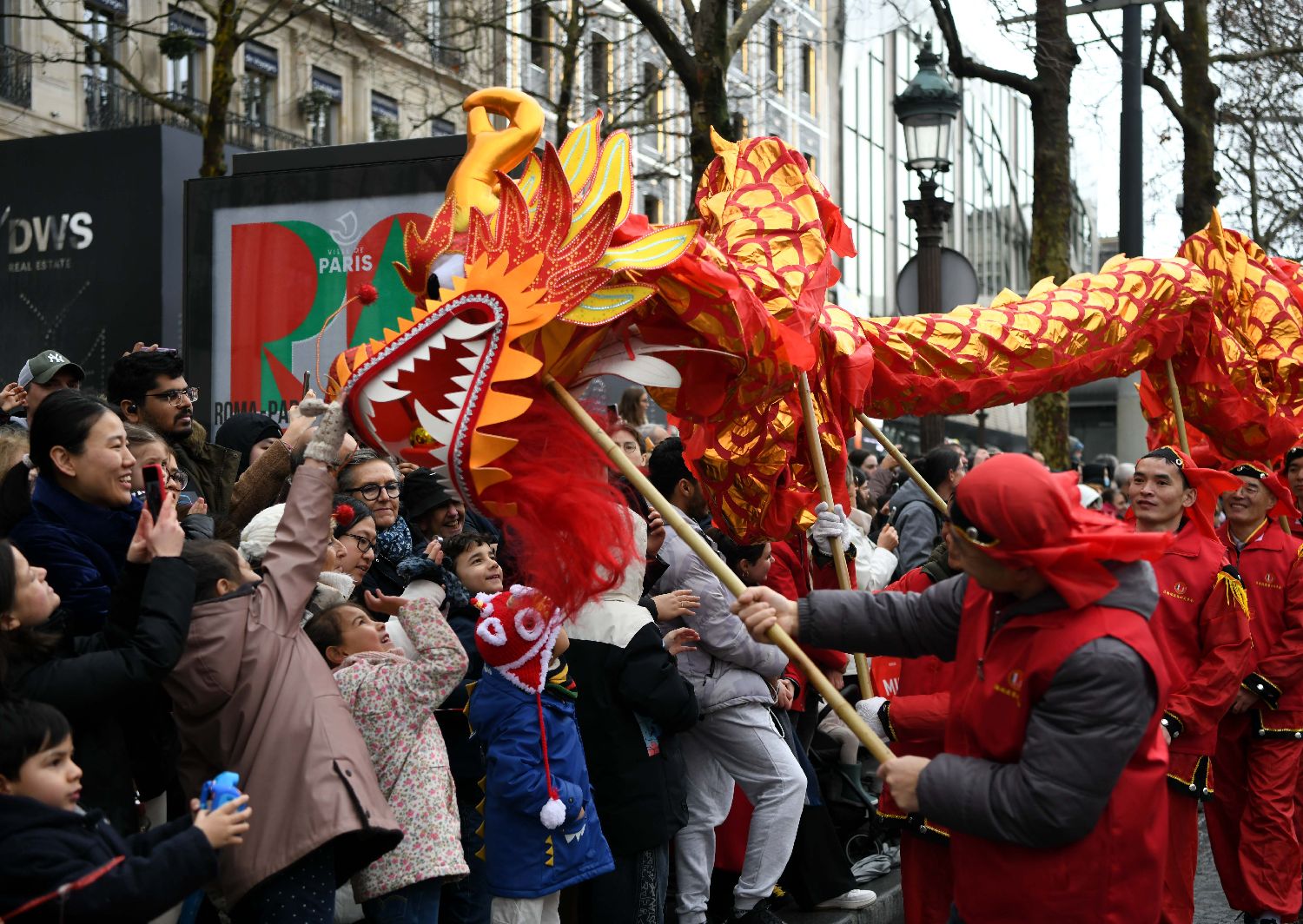 从法国巴黎香榭丽舍大街的舞龙舞狮,到新加坡牛车水璀璨的春节灯饰;从马来西亚吉隆坡喧闹的马年游行,到美国“欢乐春节”音乐会的悠扬旋律——连日来,随着马年春节临近,一场场以舞龙、灯饰、巡游和联欢为载体的庆祝活动在全球多地上演,浓郁的中国年味正跨越山海,在海外绚丽绽放、飘香四溢。图为2月1日,法国巴黎香榭丽舍大街新春舞龙活动举行,迎接马年春节,向当地民众送上新春祝福。(中新社)