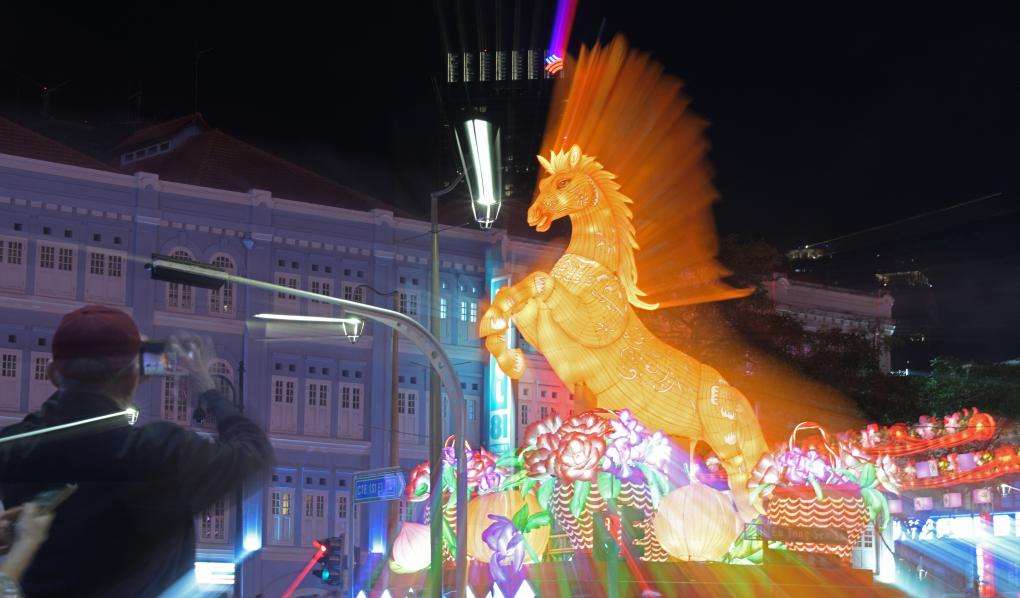 1月30日,新加坡牛车水春节灯饰正式亮起。图为在新加坡牛车水拍摄的春节灯饰。(新华社)