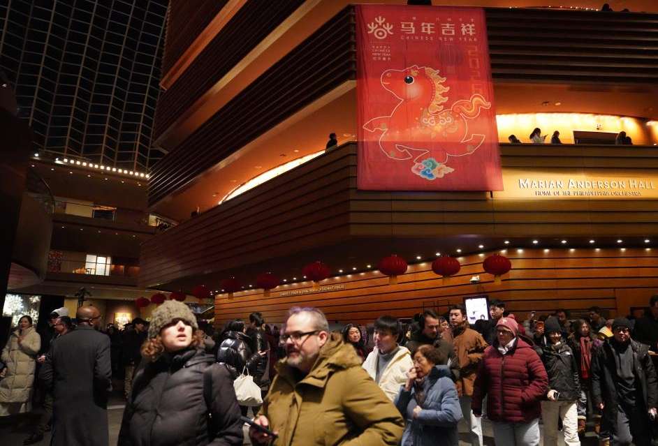1月28日,中国驻纽约旅游办事处与美国费城交响乐团在费城金梅尔表演艺术中心联合举办2026“欢乐春节”音乐会暨“你好!中国”旅游推介系列活动。图为人们参加2026“欢乐春节”音乐会暨“你好!中国”旅游推介系列活动。(新华社)