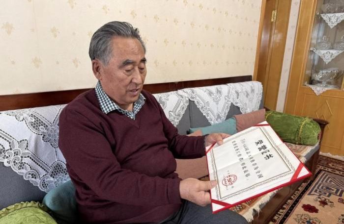 阿里木·哈德尔展示自己获得的中国“全国优秀党务工作者”荣誉证书。(图/中新网)