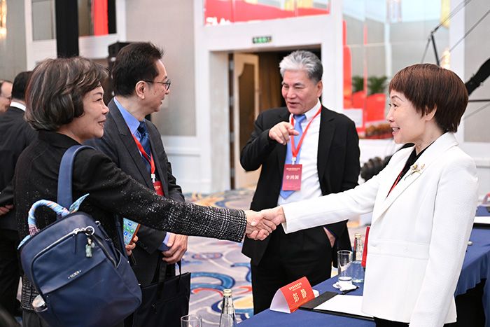 2月3日,与会嘉宾在会后握手致意。(图/中新社)