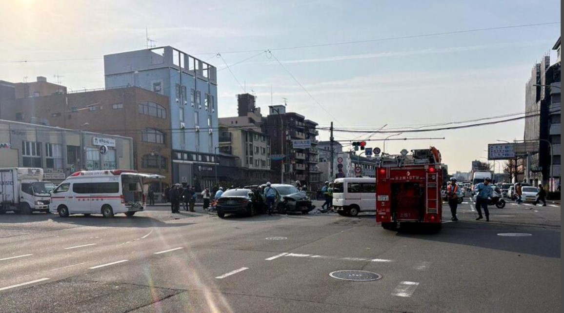 日本京都堀川丸太町发生多车相撞事故,行人受伤送医,多条道路封闭