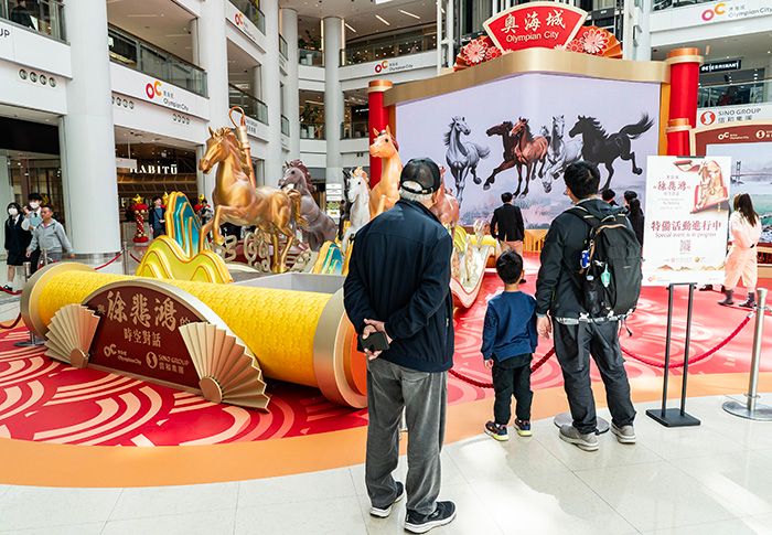 由2月4日起至3月3日,“与徐悲鸿的时空对话”系列活动于奥海城2期举行。现场亦有6米长《六骏图》立体奔马艺术装置及3.6米高开运巨笔打卡位,以及“AI水墨马互动画廊”,参与者可现场作画,并将画作转化为水墨动画及贺图等。