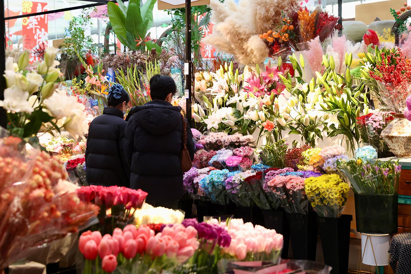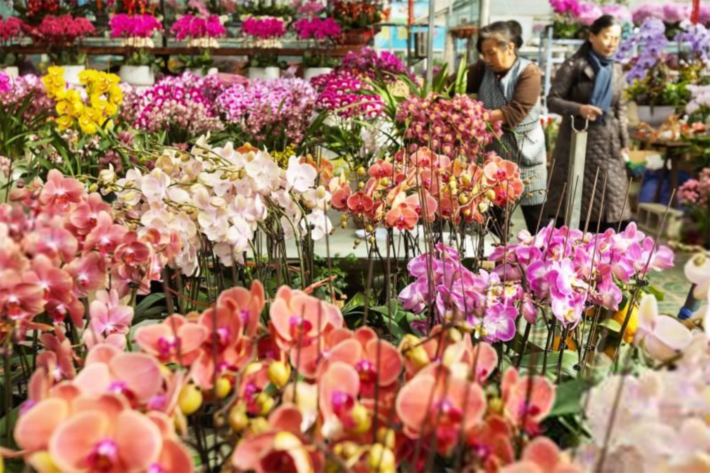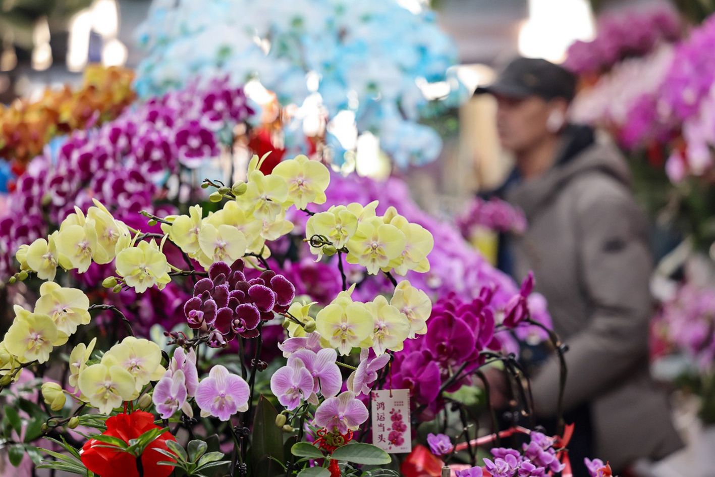 春节临近,上海年宵花市场持续升温。在虹口区月亮湾花市,色彩鲜艳、寓意吉祥的年宵花争奇斗艳,吸引众多市民前去选购。(人民网)
