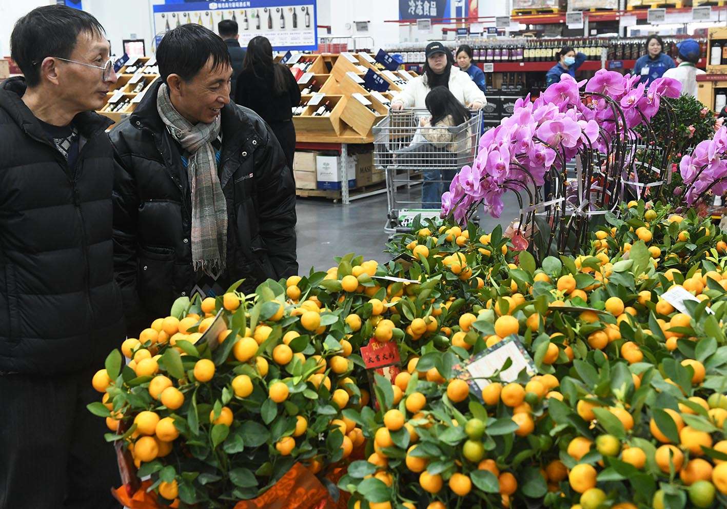 2月3日,重庆多家大型商超上新了新春饰品、年宵花等年货,吸引市民前往选购。(中新社)
